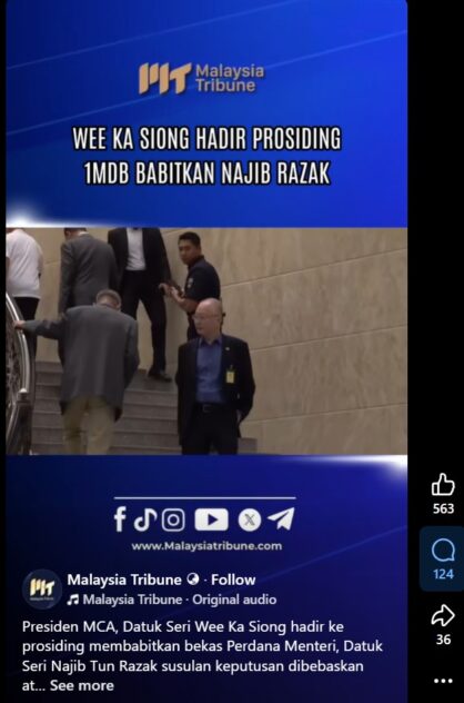Financial portal The Edge even put on record that the five-term Ayer Hitam MP arrived at 8.49am and left once the decision proceedings of the 1MDB-Tanore case began at 9.13am.