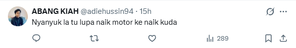 Netizen @adiehussin94 believed the man was senile, that he had forgotten that he rode on a motorcycle but a horse instead.