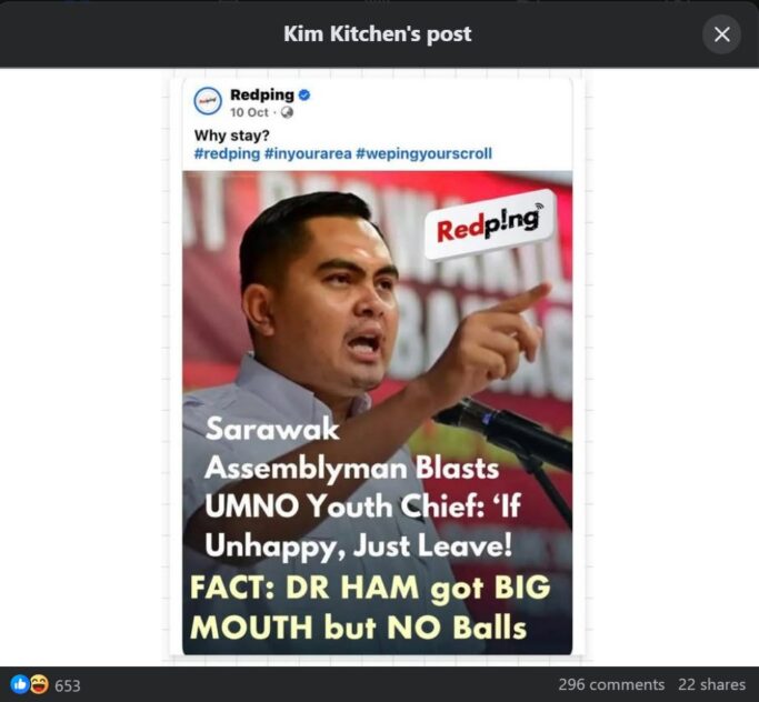 Well, while Nurulhidayah has been courteous in advising her “younger brothers with Hang Jebat blood running through their veins”, Madani backers are simply more direct and blunt: “Just leave (UMNO) if you ain’t happy. We’re all waiting!”