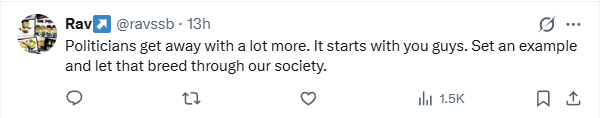 Shots were also fired by @ravssb, saying that politicians get away with more.