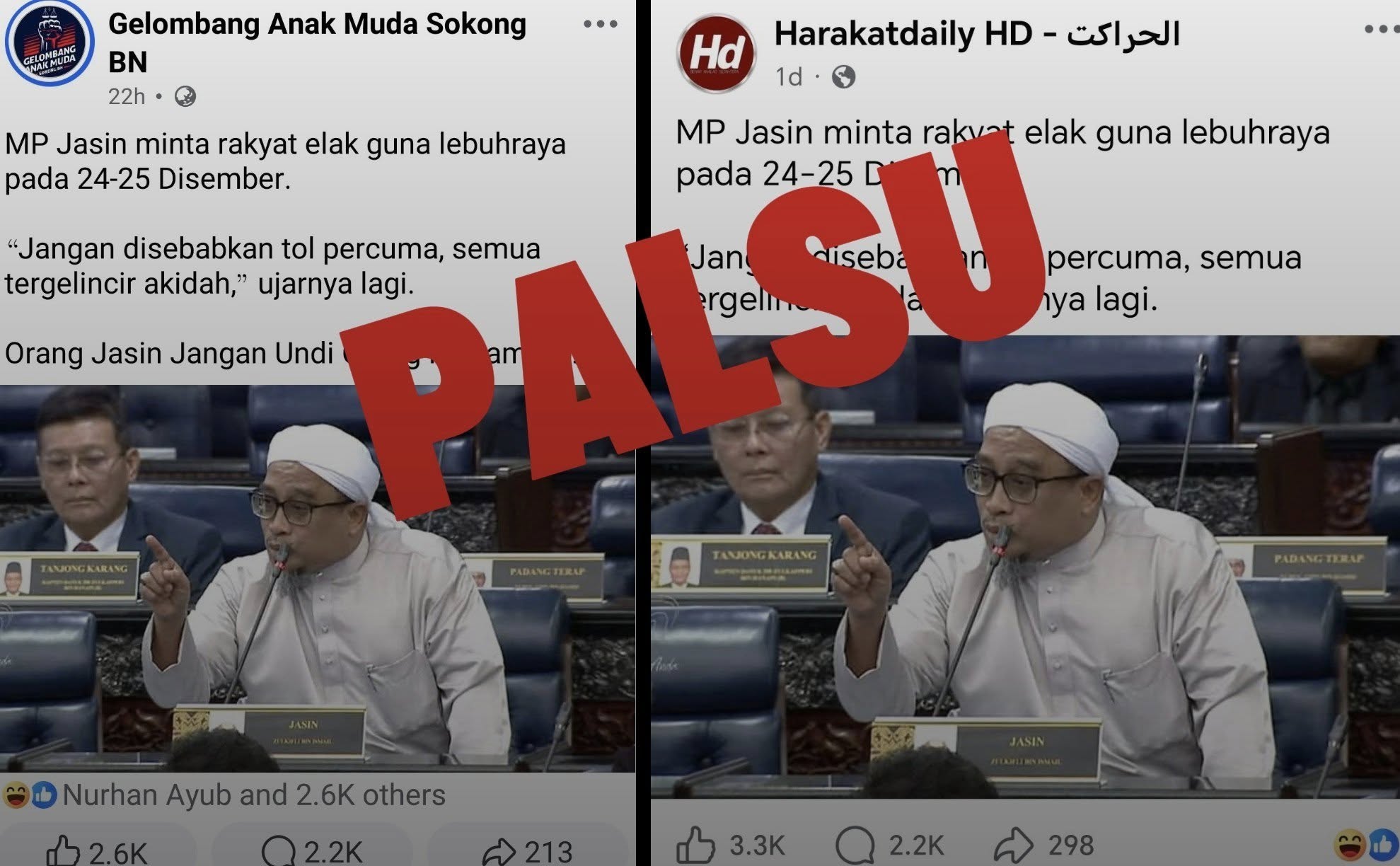 This follows viral social media posts emanating from “Harakatdaily HD – الحراكت” – a self-proclaimed satirical media portal to counter official PAS’ mouthpiece HarakahDaily – that maliciously cited the Jasin MP as saying, “Don’t because of free tolls, everyone encounters a slip of faith”.