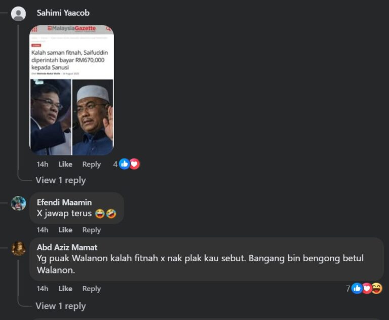 But this been Zulkifli’s ‘own social media turf’, he seemed to have followers to back him with one commenter exposing that Madani MPs and ministers, too, have their own share of folly by either being ordered by the court of law to apologise or lost in legal suits.