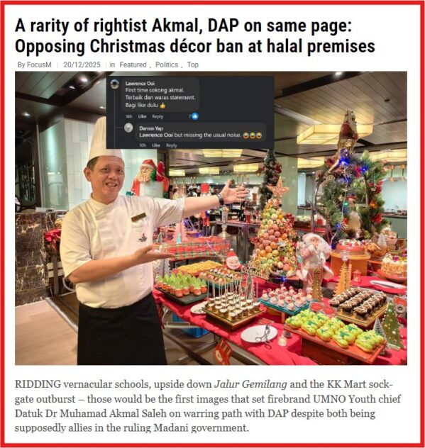Expressing surprise that even rightist UMNO Youth leader Datuk Dr Muhamad Akmal Saleh agreed, the self-described liberalist underlined that the festive décor on premises had nothing to do with the preparation of halal food.