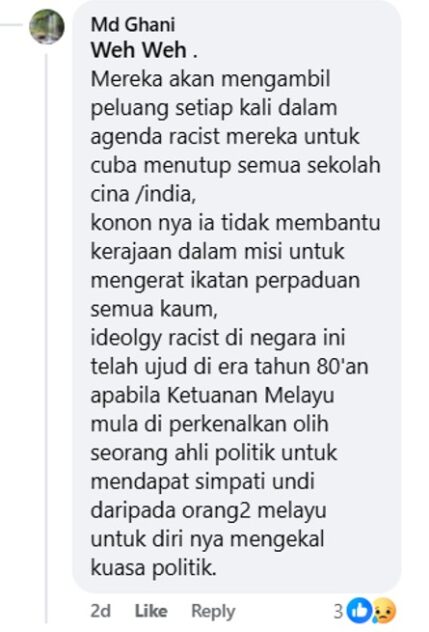 Another political observer was of the opinion that this was the consequence of the rise of the concept of ‘Malay supremacy’ that was introduced in the 1980s by a certain politician as a vote-buying tactic.