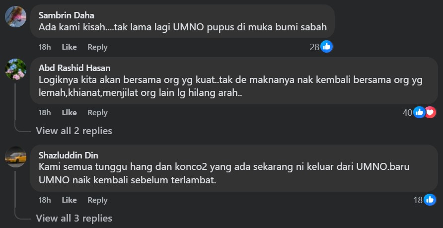 Others felt that UMNO can only discover its lifeline after “Zahid and his henchmen have left UMNO”.