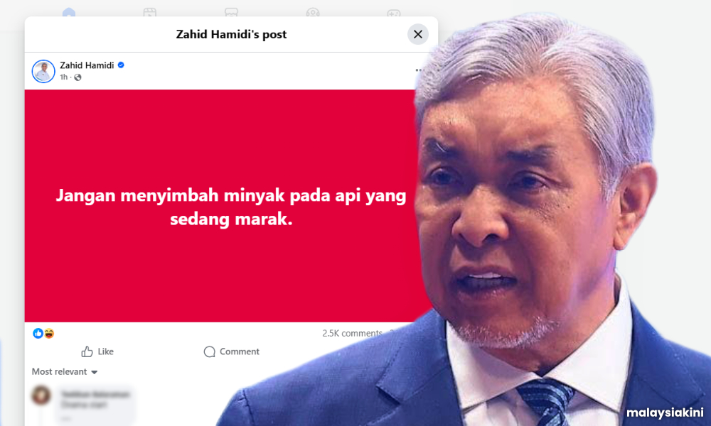 Zahid, who is also the BN chairperson, had issued a terse and cryptic message on social media - “Jangan menyimbah minyak pada api yang sedang marak (don’t pour fuel on a raging fire).”