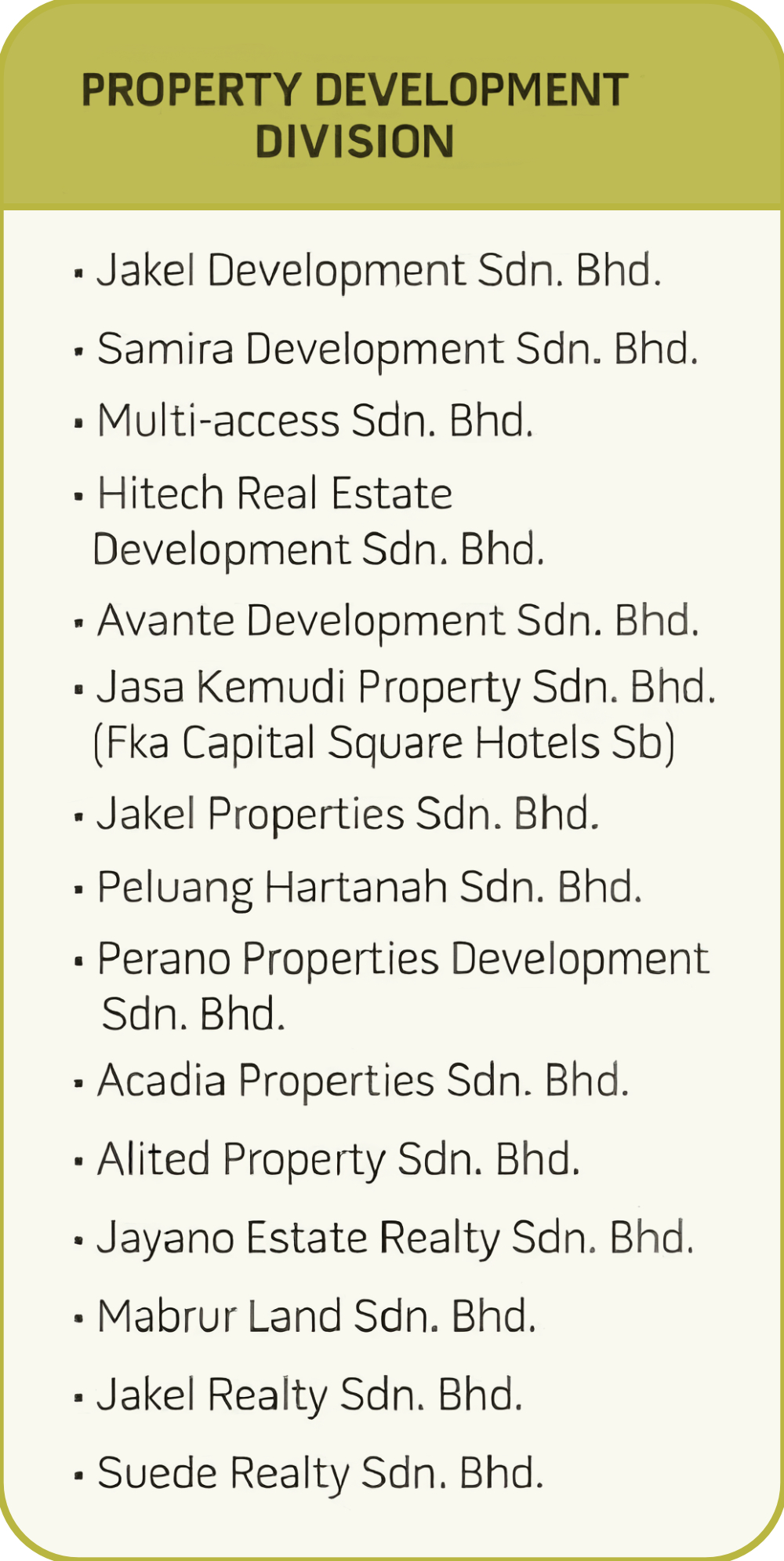 According to searches they made, the private entity is Perano Properties Development Sdn Bhd, which is listed in Jakel’s corporate brochure as a company within its property development division.