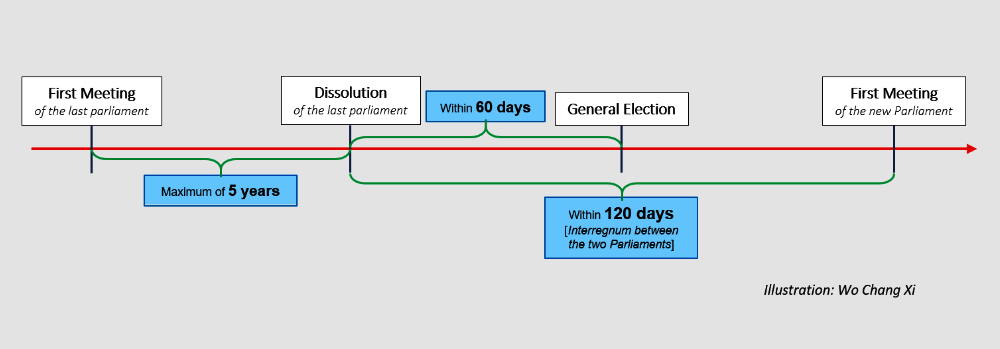 Third, with the known exception of Germany, there is an interregnum or gap between the last day of the last Parliament and the first day of the next Parliament, during which an election is held, and Parliament is formed before the new legislature convenes.