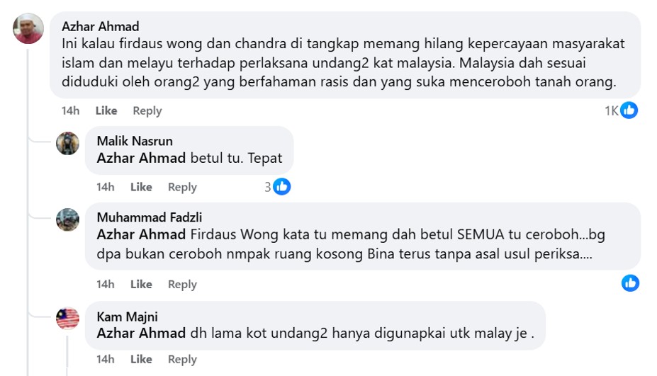 Some Malay-Muslim commenters immediately jumped to the defence of Firdaus Wong and Cikgu Chandra by simply stating what they perceive to be the truth of the matter.