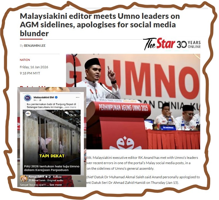 Top guns from Malaysiakini went to the UMNO general assembly to apologise to the party president over inaccurate social media visuals it had posted on its official account.