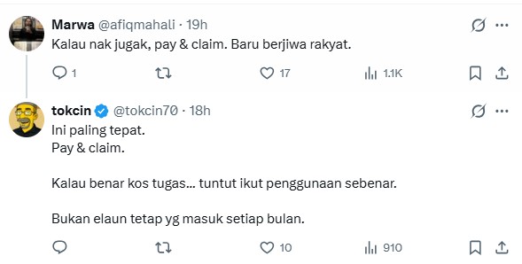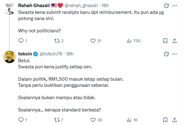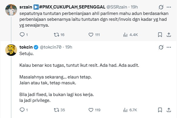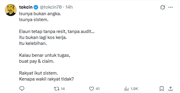 This is when tokcin echoed Chegubard’s sentiment by claiming that the RM1,500 allowance is an exorbitant sum given that “the rakyat who fill up their tank using their own money to commute to work daily never even touches that amount”.