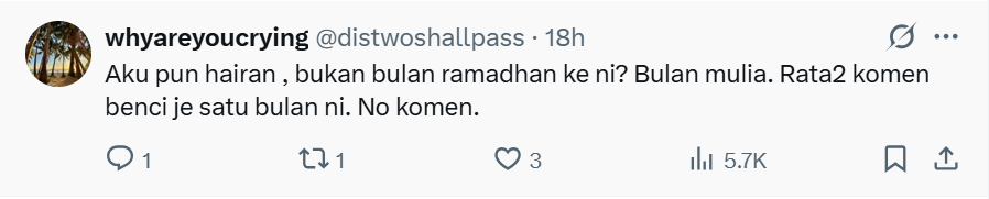 Then there was @distwoshallpass wondering about all the hateful comments coming out during the month of the Ramadhan.