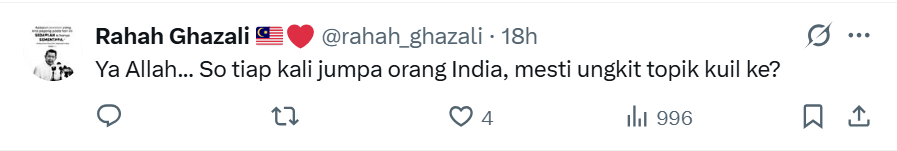 “Do you need to bring up the temple topic every time you meet an Indian?” said @rahah_ghazali in the comment section.