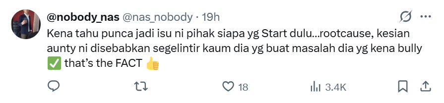 “Pity this auntie. Just because a few members of her race caused problems, she was the one who got bullied,” he said.