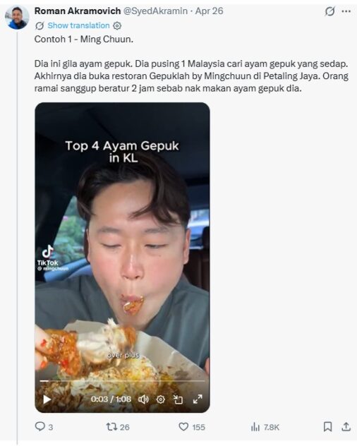 That was the simple message shared by enterprising digital creator Roman Akramovic (@SyedAkramin) who felt compelled to advice potential entrepreneurs about the pitfalls of the makan business.