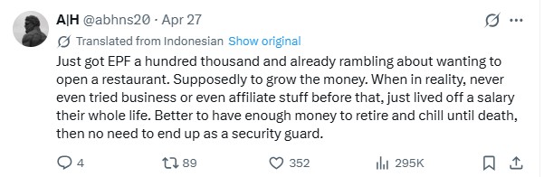 Warning those who have just collected their EPF pension funds to not lose it all in F&B, one observer claimed that many are unsuited to this industry as they have no prior experience being entrepreneurs.