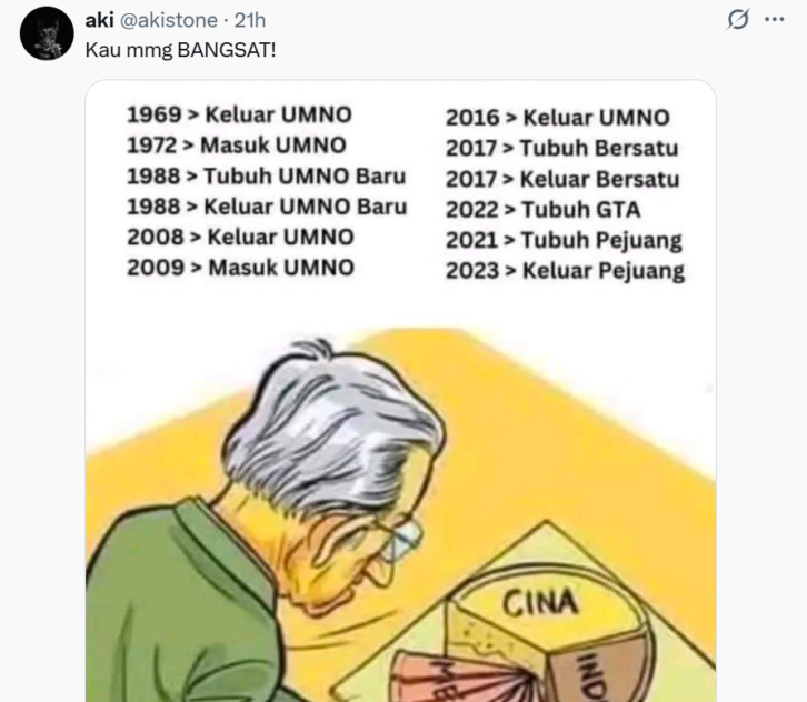 He is back to writing as can be seen in a recent post on X, stating that the Malays are the cause of their own disunity.